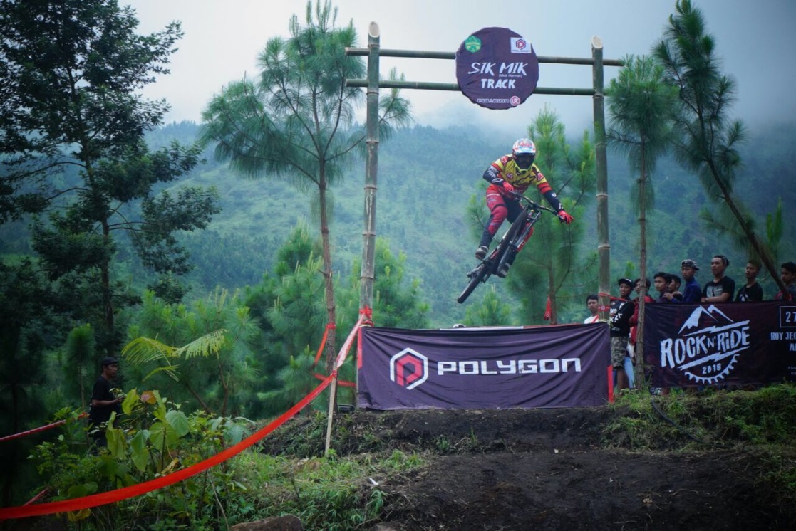“Ada enam rute yang kami siapkan di bikepark ini yang siap dijajal peserta Rock n’ Ride kali ini yang mana tiap rute punya karakteristik obstacle dan panjang yang berbeda” Jelas Sugik salah satu track builder di Pamitra Bike Park. Dari keenam rute yang disajikan, ada satu track yang dibuat khusus dan spesial untuk satu rider DH world cup dari Australia. Superstar di dunia MTB ini memang secara khusus didatangkan untuk memeriahkan event yang digadang-gadang akan rutin diselenggarakan setiap tahunnya. Mick Hannah dari tim Polygon UR, rider downhill yang pada tahun lalu menyabet medali perak di ajang world championship ini menyempatkan turun di track yang berada tepat di atas lokasi bikepark dengan elevasi yang lumayan curam, dengan obstacle yang teknikal dan drop off yang cukup tinggi.